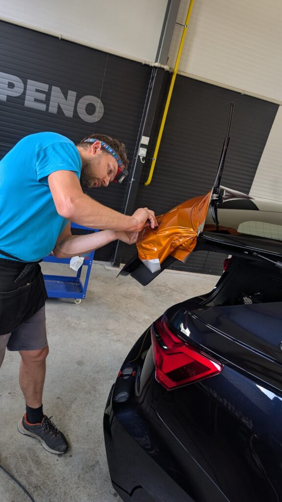 Pro maximální ochranu exponovaných partií jsme přední část karoserie ošetřili čirou PPF fólií, která spolehlivě chrání lak před kamínky, škrábanci a nečistotami.