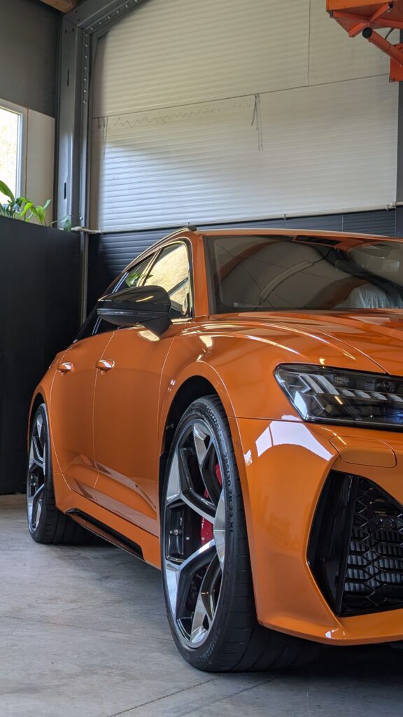 Na vůz Audi RS6 jsme aplikovali celopolep do prémiové designové fólie Liquid Copper, která vozu dodala jedinečný, metalicky měděný vzhled s výraznou hloubkou a odlesky.