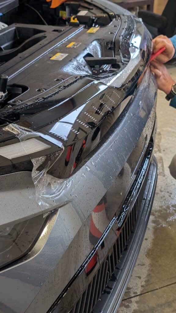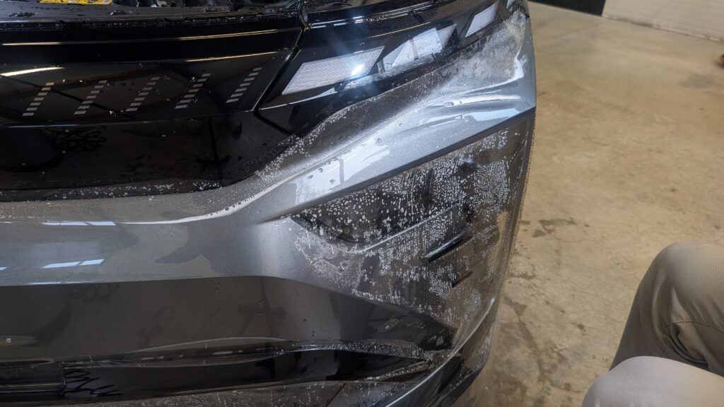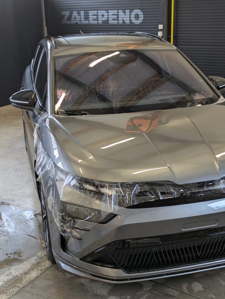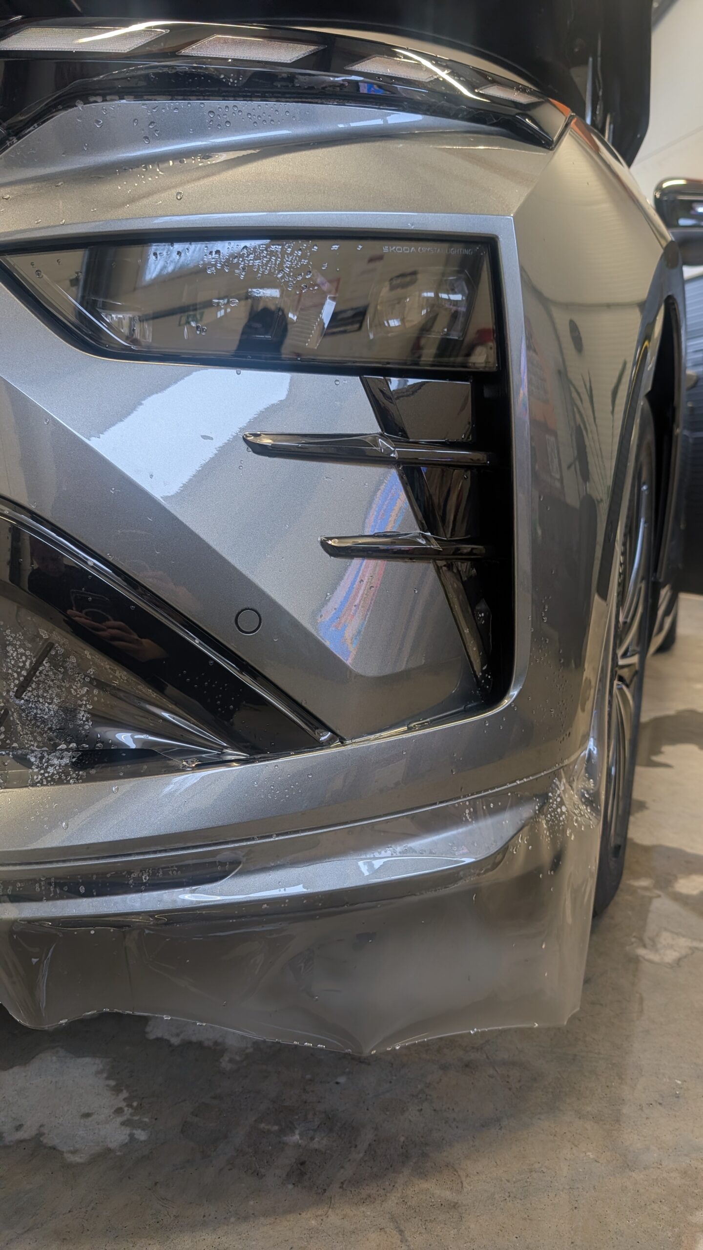 Škodu Enyaq jsme částečně ochránili PPF fólií, zaměřenou na nejvíce namáhané části vozu.