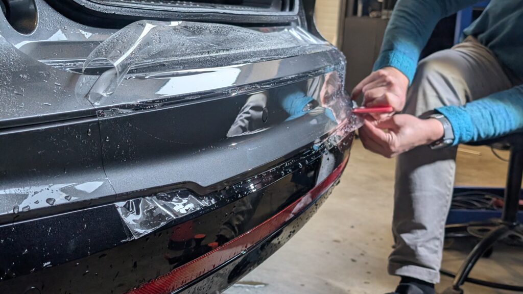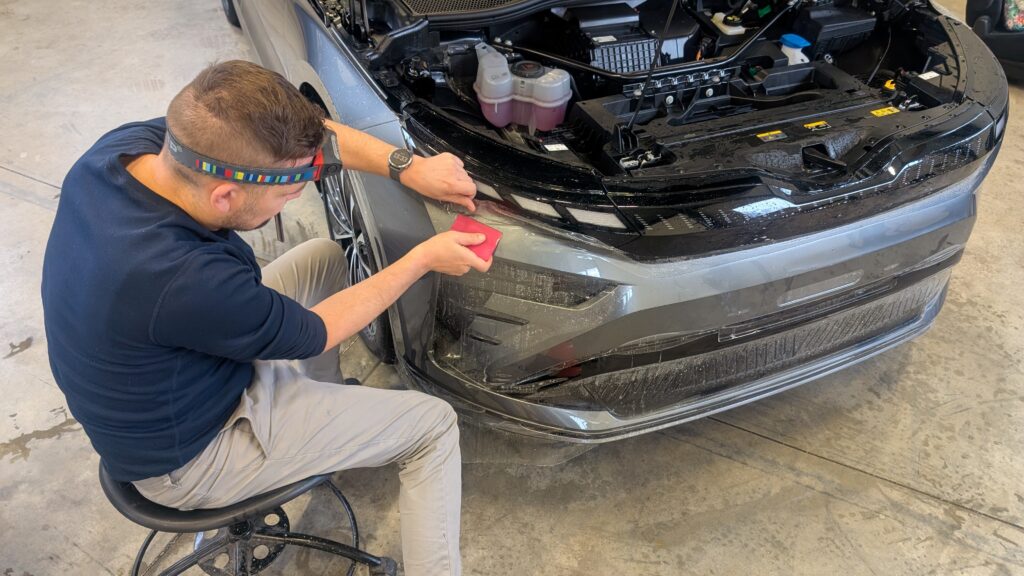 Pro zvýšení životnosti interiéru i karoserie jsme aplikovali PPF také na nástupní hrany dveří a hranu kufru, tedy místa, která jsou často vystavena kontaktu a opotřebení.